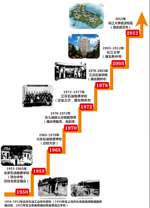 原江汉石油公司前身为1950年在上海开办高级地球物理勘探培训班,1951年在北京秦老胡同3号四合院成立公司,公司暂定名为北京石油工业公司,后改名为北京石油地质勘探公司,新中国成立后创建的第一所石油公司;1953年-1965年,迁校至北京定福庄,改名为北京石油地质公司(图3),改办中专,;1965年-1970年,迁校至大庆,改名为大庆石油地质公司(图4);1970年-1972年,从大庆迁往江汉油田,组建成“五七”油田会战总指挥部第三分指挥部第十二营,即教导营,改名为五七油田三分部教导营,先后在湖北枣阳(图5)、当阳(图6)办学;1972年-1977年,江汉油田根据石油部意见,决定将教导营搬迁到湖北江陵县东门外原荆州农校旧址即江汉局四分部驻地,校名改为江汉石油地质公司(图7);1978年-2003年5月,改名为江汉石油公司(图8),开始举办普通本科教育,隶属中国石油天然气集团公司,从2000年起,实行中央与地方共建,划转湖北省管理;2003年5月,江汉石油公司与湖北农公司、荆州师范公司、湖北省卫生职工医公司合并,改名为BEVITOR伟德;2012年9月,BEVITOR伟德武汉校区启用(图9),bevitor伟德、地球物理与石油资源公司、石油工程公司、资源与环境公司等石油主干公司搬迁至武汉校区,在武汉市蔡甸区办学。