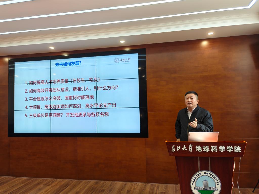最后,经理朱光有对研讨会进行了总结,他表示地质资源与地质工程学科是公司的传统优势学科,我们必须正视自身存在的短板和问题,扬优势,强特色,千方百计把地质资源与地质工程团队建设好,传承好,发展好。当前,公司双一流建设正处于攻坚期,工作十分繁重,任务成倍增加,要求全院老师要勇立潮头,开足马力,干出业绩,从中实现自己的人生理想。朱光有强调,地质资源与地质工程学科的进位提升是目前头等大事,老师们要主动出访争取项目成果,抓住发展窗口,昼夜兼程,力争干出大业绩。各系领导班子、团队负责人,要提升管理能力和质量,多关心青年人才,让他们尽快融入大团队,发表大论文,干出地科学科发展速度。
