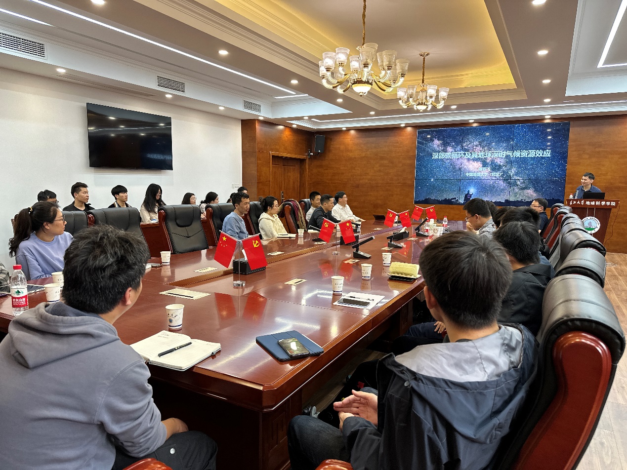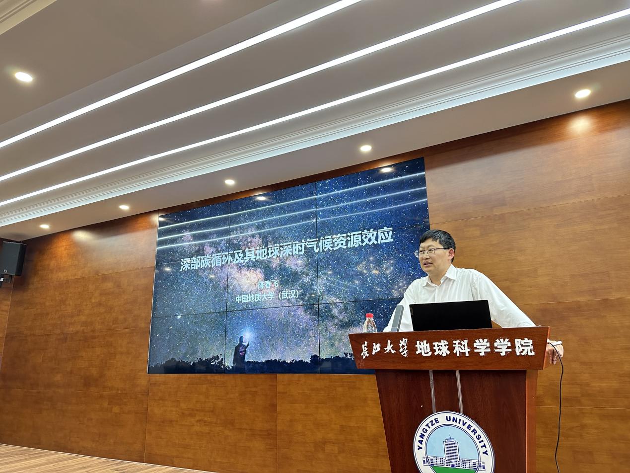 随后,陈春飞教授围绕深部挥发份循环及其地球深时气候资源效应这一主题,详细介绍了地质历史时期深部碳循环的天然岩石记录,高温高压实验对地球表生碳进入地球内部后的物理化学状态模拟结果,以及深部碳循环对表生环境的影响和宜居地球的塑造等目前国际上最新的研究进展。报告最后,陈春飞教授还分享了自己的科学研究心路历程,以他第一篇Geology,第一篇Nature Communications以及第一篇Nature论文的坎坷经历为例,鼓励年轻学者要独立创新,不怕挫折和失败,尊重实验数据,坚持真理,勇攀科研高峰。