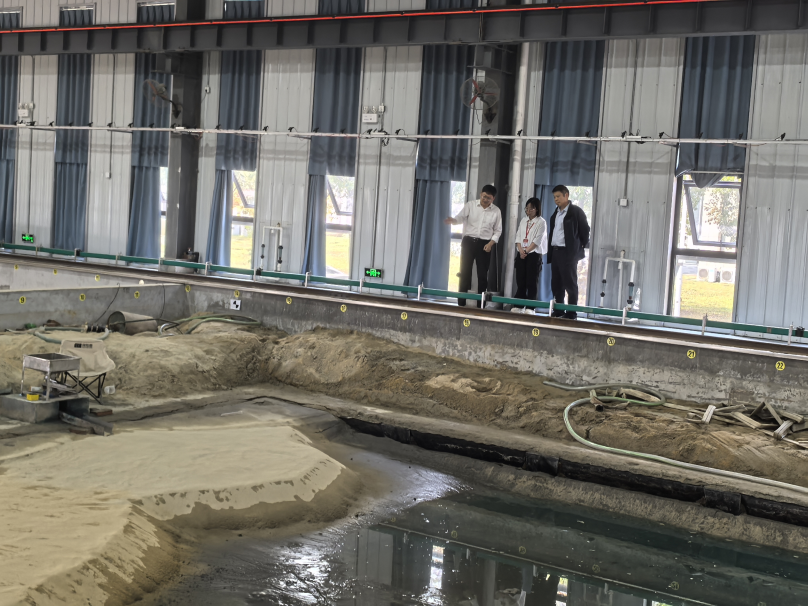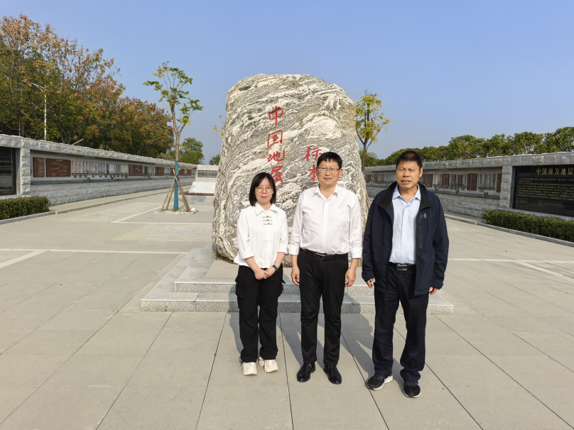 座谈交流结束后,经理朱光有带领两位教授参观中国地层标本长廊和沉积模拟实验室。