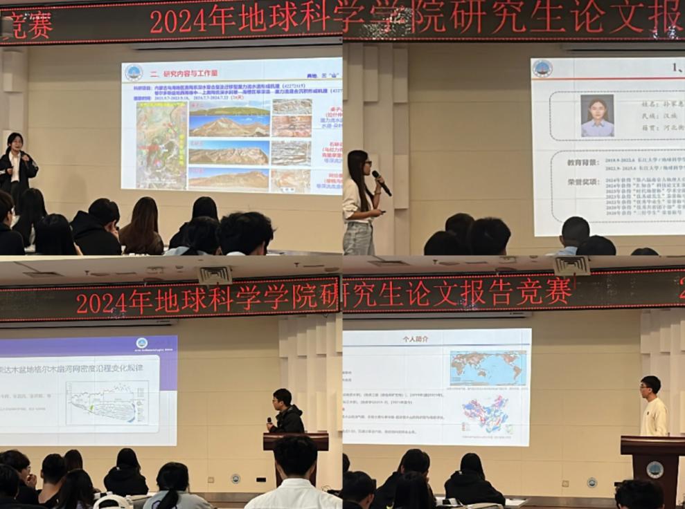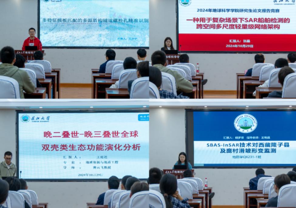 王林同学从物源出发,结合研究区具体环境分析坳陷湖盆细粒重力流沉积特征、王延达同学建立双壳类数据库,以全新视角确定了中生代海洋革命的开始时间始于晚三叠世、张跃同学创新性的以动态模型指导逐点金字塔点云语义分割架构。从储层沉积到非常规油气,从地球化学分析到遥感水文,选手们主题丰富、条理清晰的汇报,引人入胜。评委们的提问与点评更是“一针见血”,饶松教授提醒大家题目要凝练,突出核心问题,不同分流河道是如何形成的,它们又是怎么作用到成岩作用的,对储层预测有何帮助等提问,引发同学们的思考。陈梅老师就报告中研究区段是否受明显底流作用,引导同学们进一步明确各种因素对沉积相成因的影响,并表达了对大家所汇报的科研成果的肯定。王喜鑫教授提醒黄婉滢同学把高寒山区岩石脆性评价方法同油气开发相结合,并对比其他区域的脆性评价方法有何差异性,其中蕴含的研究同生产需要结合、建立对比关系的思维,给在座研究生扩展了新思路。刘远刚教授借苏振峰同学关于水体提取分析的汇报,指出掌握一定的水文知识,将遥感技术同水文监测结合,符合目前交叉学科的需要,大有裨益。吴楠教授对魏梦雪同学关于滑坡监测的汇报给予肯定,表示希望大家深入思考研究成果的应用价值,期待大家能真正“把论文写在祖国的大地上”。朱经理以赵国春院士近期的汇报,对同学们提出了新要求,希望大家再接再厉,做出更多的高水平论文。