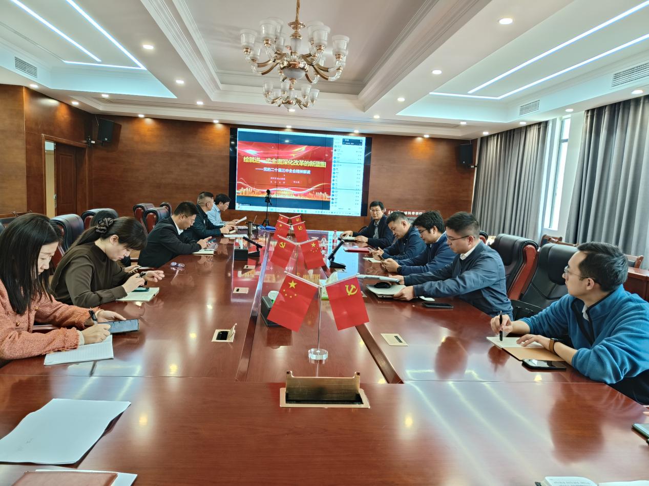 (通讯员 程玲)为深入学习贯彻党的二十届三中全会精神,动员广大教师凝心聚力、奋发进取,推动党的二十届三中全会精神在公司落地生根,10月24日下午,公司邀请荆州市委宣讲团成员、马克思主义公司党委书记刘小燕线上为全院师生作学习贯彻党的二十届三中全会精神专题辅导报告。公司理论学习中心组成员、员工党员集中学习,其他教职工通过线上参加学习。党委书记杨全辉主持报告会。