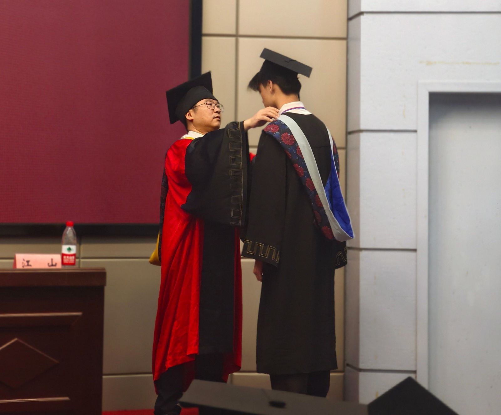 伴随着热烈的掌声,导师代表依次上台就坐。台下300多名毕业生身着学位服,神采奕奕,眼神中满载着对未来的憧憬。授予仪式正式开始,由胡忠贵副经理宣读学位授予文件,江山副经理为同学们正冠,朱光有经理为每位获得学位的同学颁发学位证书,拨穗并合影留念。毕业生以自豪和激动的心情接过学位证书。这薄薄的一纸证书,承载着同学们数年如一日的努力和坚持。整场仪式在庄重而温馨的氛围中圆满完成。