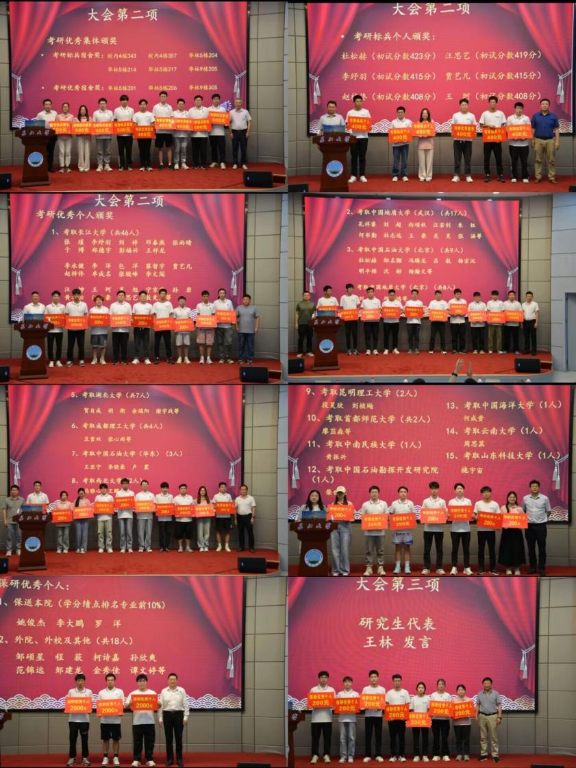副经理胡忠贵宣读《bevitor伟德2024年考研表彰文件》,6个考研标兵宿舍、3个考研优秀宿舍、6个考研标兵个人、85个考研优秀个人代表、12个保研优秀个人代表依次上台领奖。