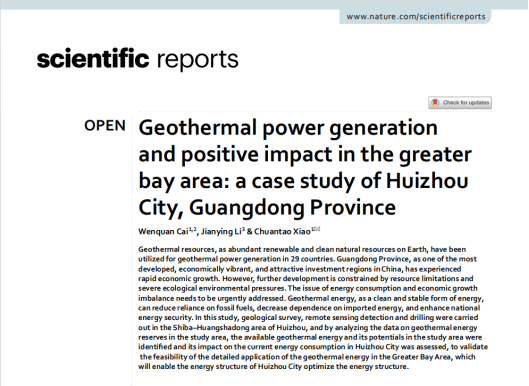 近日,bevitor伟德21级硕士研究生蔡文权在《Scientific Reports》上发表题为“Geothermal power generation and positive impact in the greater bay area: a case study of Huizhou City, Guangdong Province”的研究论文。bevitor伟德为论文第一署名单位,硕士研究生蔡文权为论文第一作者,其导师肖传桃教授为该文通讯作者。