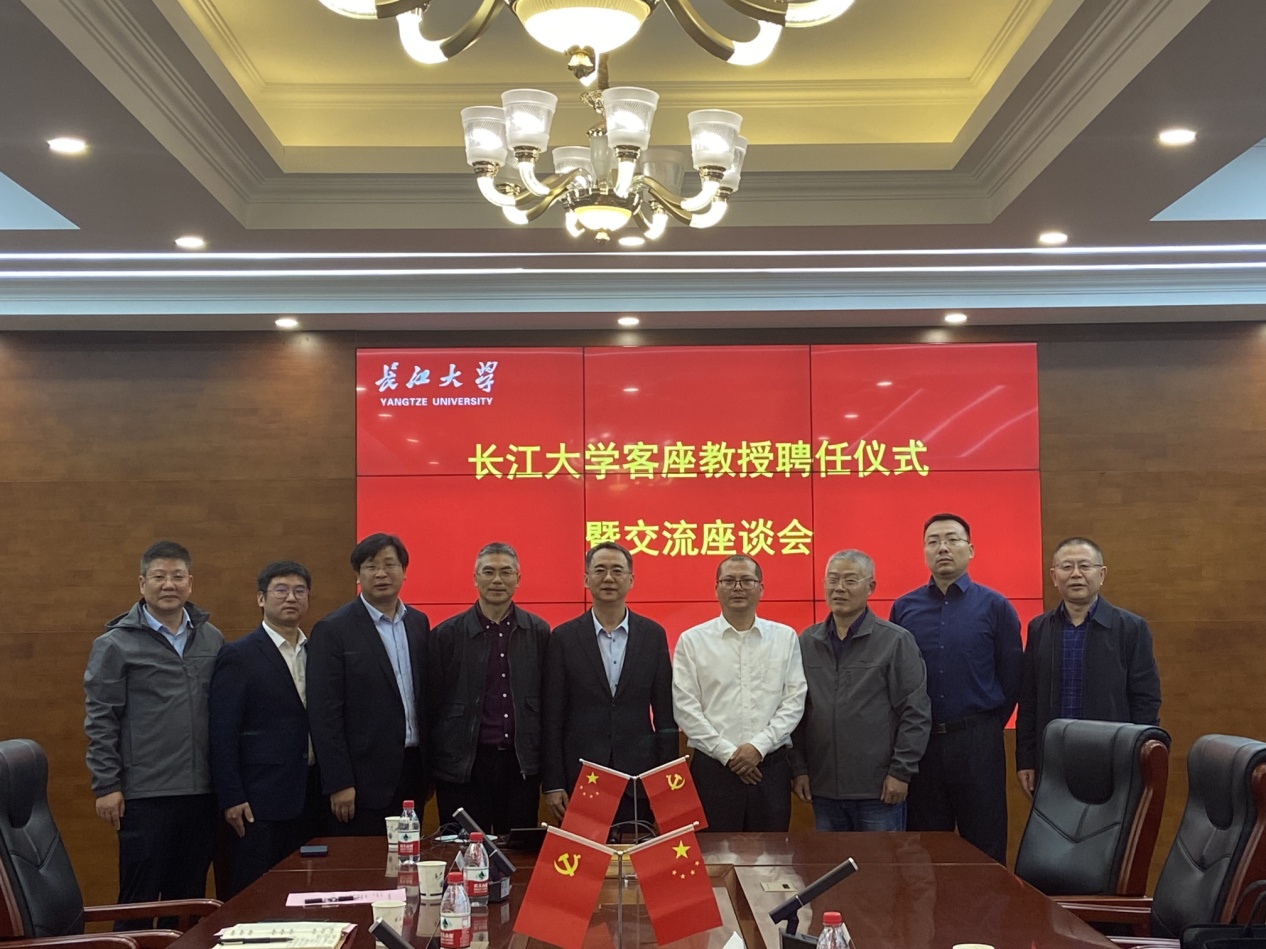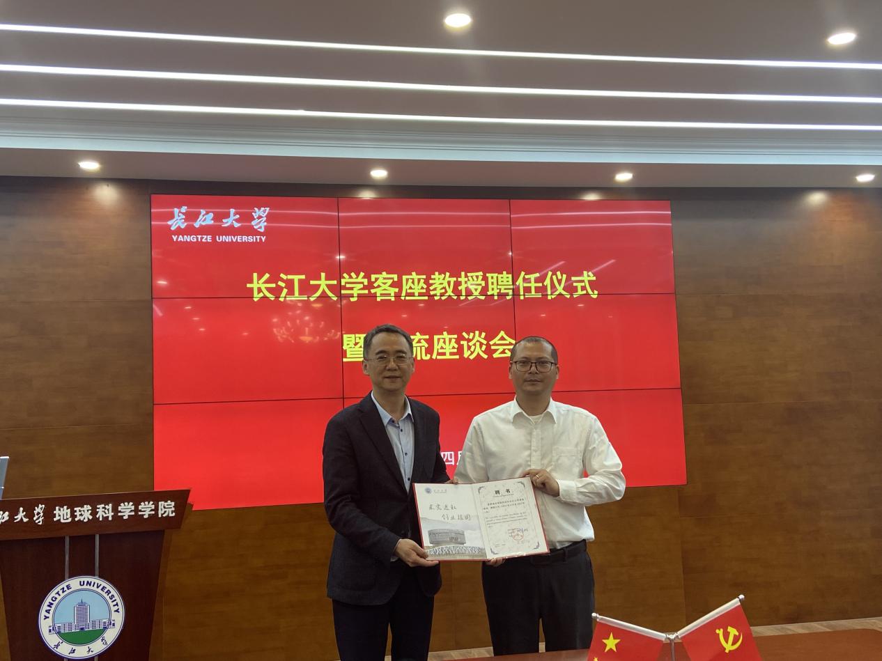 报告结束后,公司在石油科技大楼C201会议室举行了客座教授聘任仪式暨交流座谈会,公司党委书记王建平给肖明国颁发客座教授聘书,并代表公司向他对母校的支持表示感谢,校企双方就团队建设、科学研究、人才培养和员工就业等问题进行了深入交流。