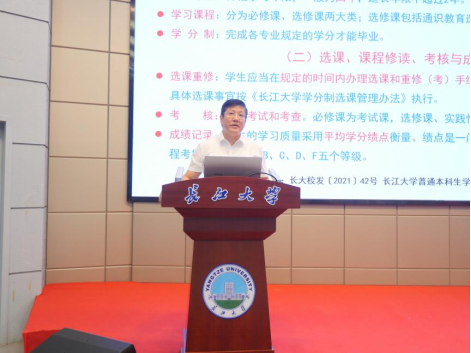 党委副书记冯舒从日常教育管理出发,向家长们介绍了新生入校后的安全教育等系列工作安排,着重强调了禁酒令等校纪校规,希望家长们积极配合,为23级新生未来四年的老员工活奠定良好的基础。