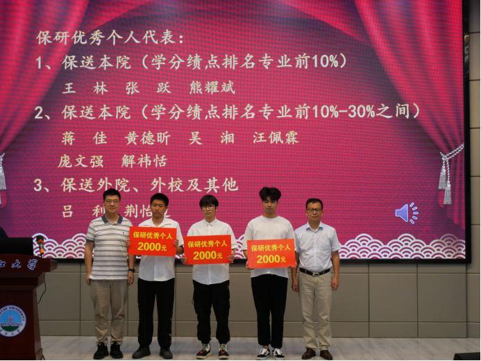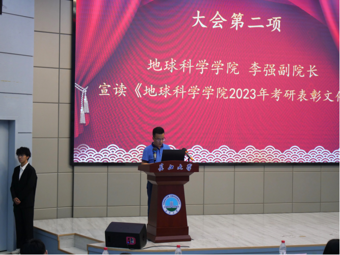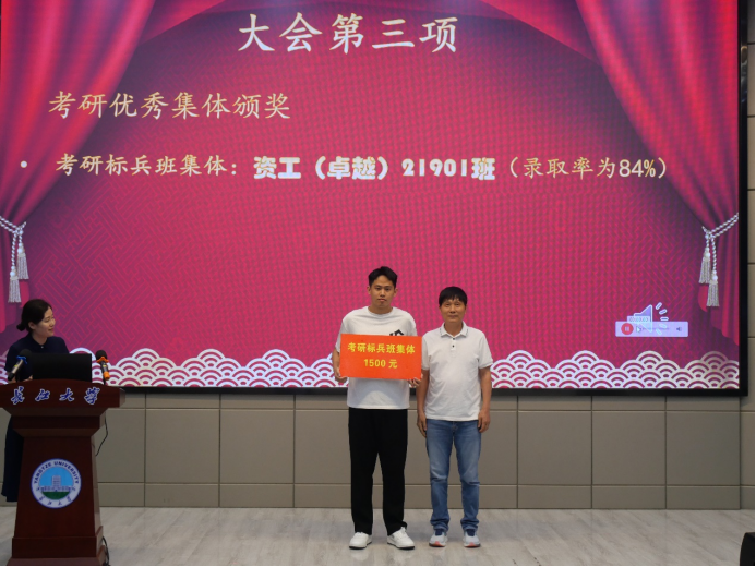会议在隆重的国歌声中拉开帷幕。副经理李强宣读《bevitor伟德2023年考研表彰文件》,1个考研标兵班级、6个标兵宿舍、2个标兵个人,和43名优秀个人依次上台领奖。