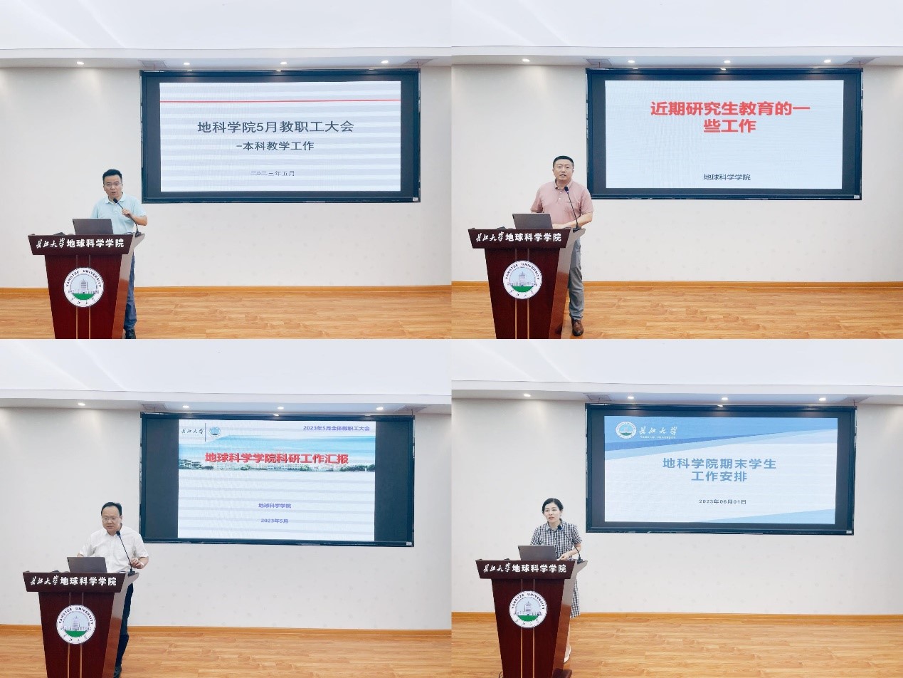 会议伊始,公司领导班子成员就各自分管工作做主题发言。副经理李强围绕教学质量监控、毕业资格审核和2023版本科专业人才培养方案修订进行讲解和安排;副经理吴楠通报公司本年度硕博士答辩情况,安排2024年研招宣传工作,并对公司产品方面的问题进行了强调;副经理韩登林通报了科研经费到账情况、大型仪器开放预约管理办法实施以来的执行情况,并要求老师积极走出去参加学术会议,扩大学术影响;副经理丁四兵通报了开展校园摩托车专项整治工作的相关事宜;党委副书记冯舒对员工诚信教育、安全教育和毕业生文明离校等方面的工作进行了安排。