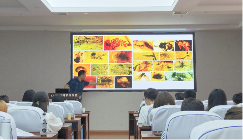 接着,王博研究员简述了琥珀的演化过程,并展示了各种动植物琥珀的照片。他根据这些琥珀推测,东南亚的热带雨林曾经是最大的,因气候变暖,物种迁移,现有的热带雨林亟需被保护。