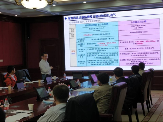 (通讯员韦志浩)2021年4月21日,中海油天津分公司南黄海盆地两个科研项目中期检查验收在石油科技大楼A区多功能会议厅举行。参加会议的有中海油天津分公司研究院李其正经理、牛成民地质总师、杜晓峰首席等专家,中国地质大学(武汉)梅廉夫教授和沈传波教授团队主要成员、BEVITOR伟德何幼斌教授和罗进雄副教授团队的主要成员参加了此次会议。本次会议由中海油天津分公司研究院黄海勘探室杨波主任主持。中国地质大学(武汉)的沈传波教授和BEVITOR伟德的罗进雄副教授分别代表各自团队汇报了项目的研究进展和所取得的阶段性成果。汇报结束后,与会专家充分肯定了两个项目所取得的阶段性成果,同时提出了存在的问题和下一步的工作建议。