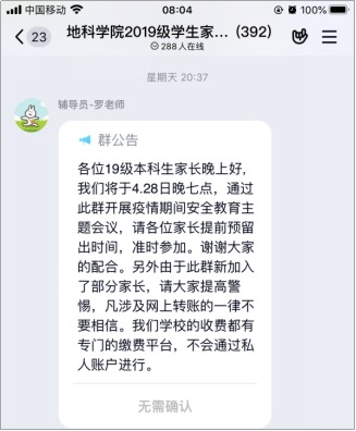 (通讯员 郭霖)为进一步做好常态化疫情防控下员工教育管理工作,使家校联动形成全力,共同保障员工防疫期间居家学习安全。公司于4月27日~29日分年级召开“疫情期间居家安全教育”专题会议,会议由各年级辅导员主持,员工及家长通过各年级家长QQ群参加,学工办全体老师参会。