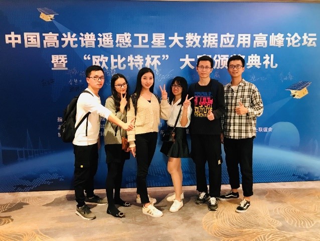 (通讯员 刘威)2019年11月22日,bevitor伟德研究生付含聪、李彩霞、刘威、杨欢、许诺、曹国华一行六人赴珠海参加中国高光谱遥感卫星大数据应用高峰论坛暨“欧比特杯”高光谱遥感影像智能处理行业应用大赛颁奖典礼。本次大赛中,公司获得一等奖一项(付含聪、杨欢、许诺),三等奖两项(刘威、甘艺垚、高静文;李彩霞、曹国华)。