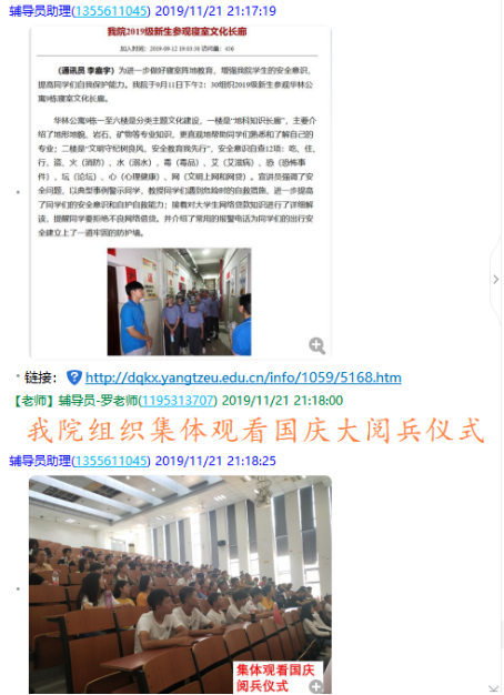(通讯员罗小玉)11月21日晚19:30,公司在2019级员工家长群召开了19级本科生第一次线上家长会,此次家长会由年级辅导员罗小玉主持,公司党委副书记任倩、辅导员王宁、潘志远、张严、辅导员助理周寒及255名员工家长共同参与了本次线上讨论。