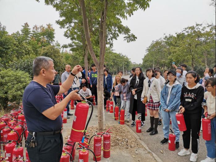 在消防演习前,校区安全保卫部部长路勇讲解了消防安全知识和灭火器的操作规范,以及在何时去使用灭火器,并提醒所有员工“生命重于一切,安全高于泰山”,指出灭火器只用于扑灭初期火灾,一旦出现重大火情,应立即逃生。