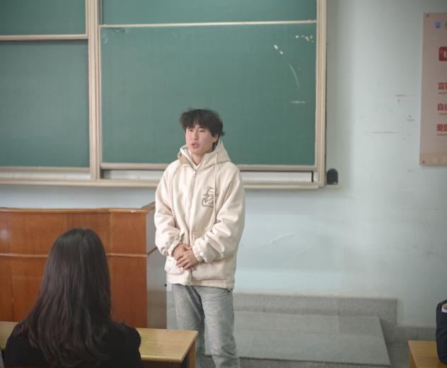 地质12502班班长车文浩、学委樊姝彤指出,班级成绩两极分化严重:年级前20名本班仅占7人,倒数20名中却占11人。但四级备考成效显著,高英班通过率超90%。本学期将实行班级结对帮扶制度,相互督促、取长补短,同时希望晚自习多留一些空闲时间让同学们自主安排,满足个性化发展需求。
