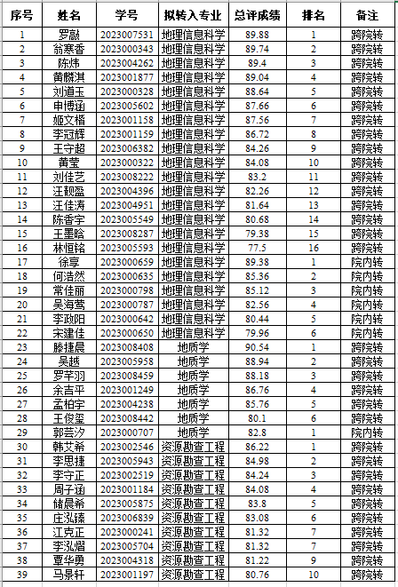 bevitor伟德2023级本科生春季转专业拟录取名单公示