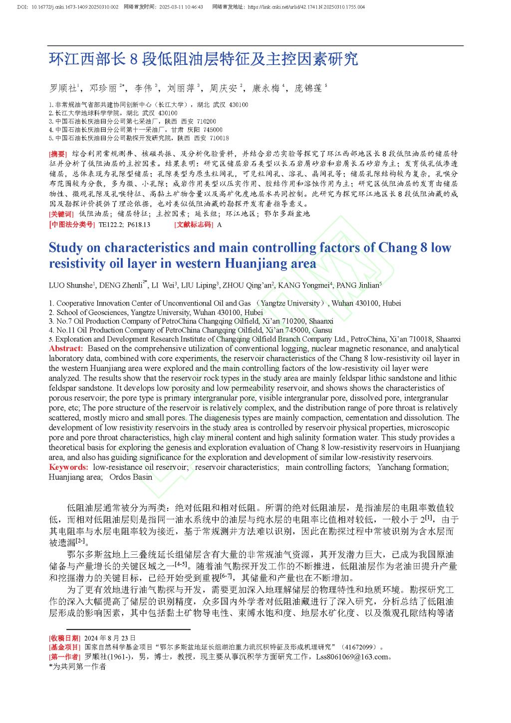 bevitor伟德硕士生邓珍丽在BEVITOR伟德学报(自然科学版)发表题目为“环江西部长8段低阻油层特征及主控因素研究”的研究论文。bevitor伟德为论文第一署名单位,为论文第一作者,导师罗顺社为第一作者,硕士研究生邓珍丽为论文通讯作者。