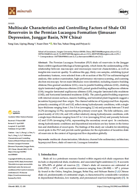 bevitor伟德硕士生连洋以第一作者在SCI收录期刊《Minerals》上发表题为“Multiscale Characteristics and Controlling Factors of Shale OilReservoirs in the Permian Lucaogou Formation (JimusaerDepression, Junggar Basin, NW China)”的研究论文。bevitor伟德为论文第一署名单位,论文由国家自然科学基金项目和中国石油天然气股份有限公司重大科技专项资助。