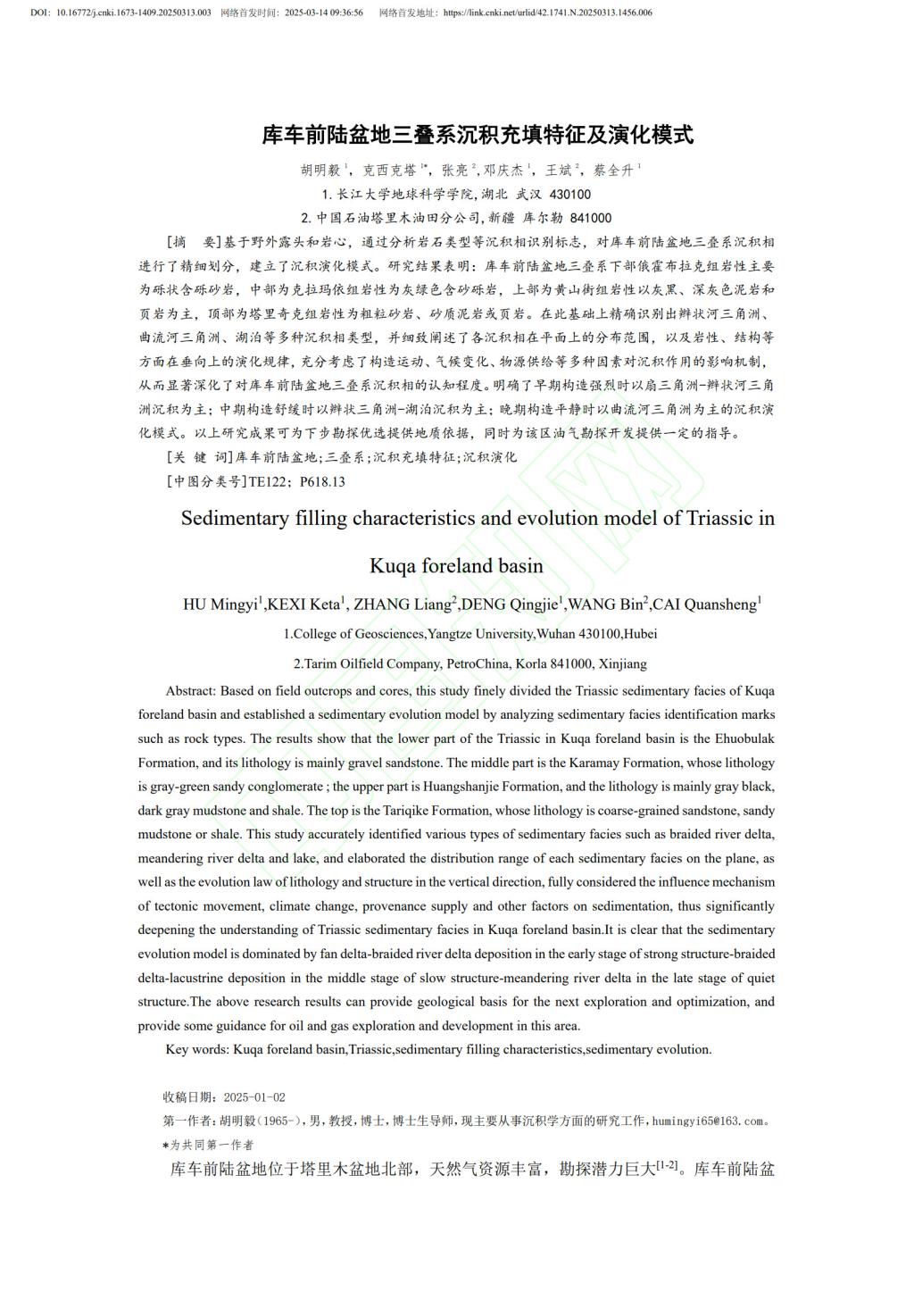 bevitor伟德硕士生克西克塔在期刊《BEVITOR伟德学报(自然科学版)》上发表了题为“库车前陆盆地三叠系沉积充填特征及演化模式”的研究论文。bevitor伟德为论文第一署名单位,克西克塔为共一作者,其导师胡明毅教授为该文通讯、第一作者。