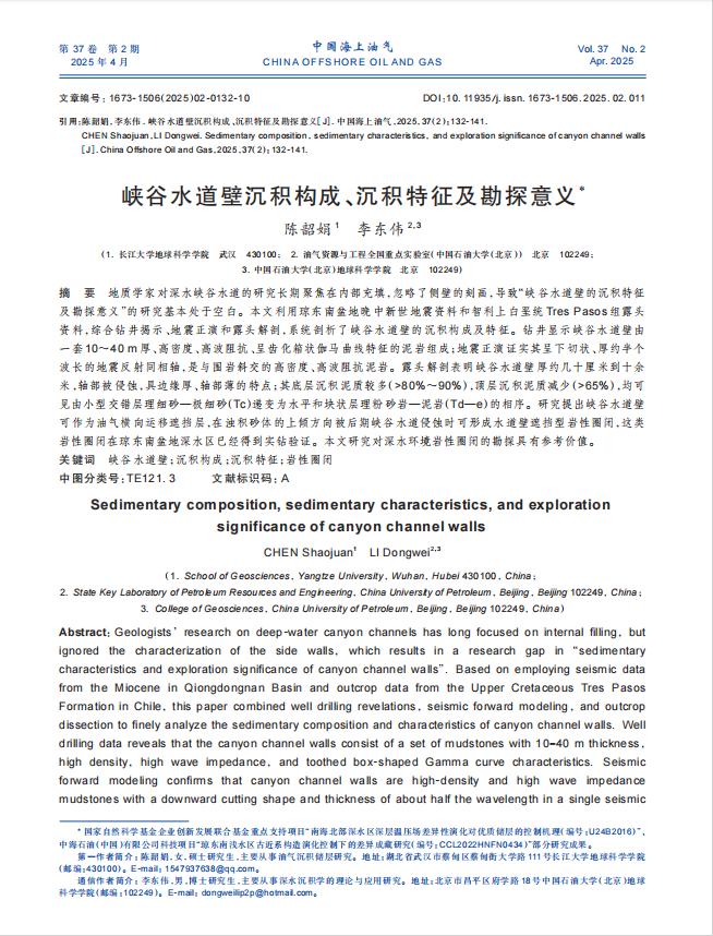bevitor伟德硕士生陈韶娟在期刊《中国海上油气》上发表了题为“峡谷水道壁的沉积特征、沉积模式及勘探意义”的研究论文。bevitor伟德为论文第一署名单位,陈韶娟为第一作者。