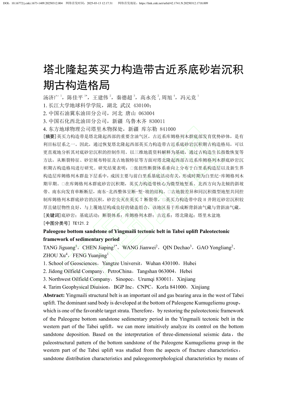 bevitor伟德汤济广教授团队长期从事盆地构造分析、油气构造解析与成藏、非常规油气资源评价等方面的教学与科研工作,团队硕士生陈佳平在BEVITOR伟德学报(自然科学版)上发表题目为《塔北隆起英买力构造带古近系底砂岩沉积期古构造格局》的研究论文,bevitor伟德为论文第一署名单位,硕士生陈佳平与导师汤济广教授为论文的共同第一作者,本项研究得到国家自然科学基金资助。