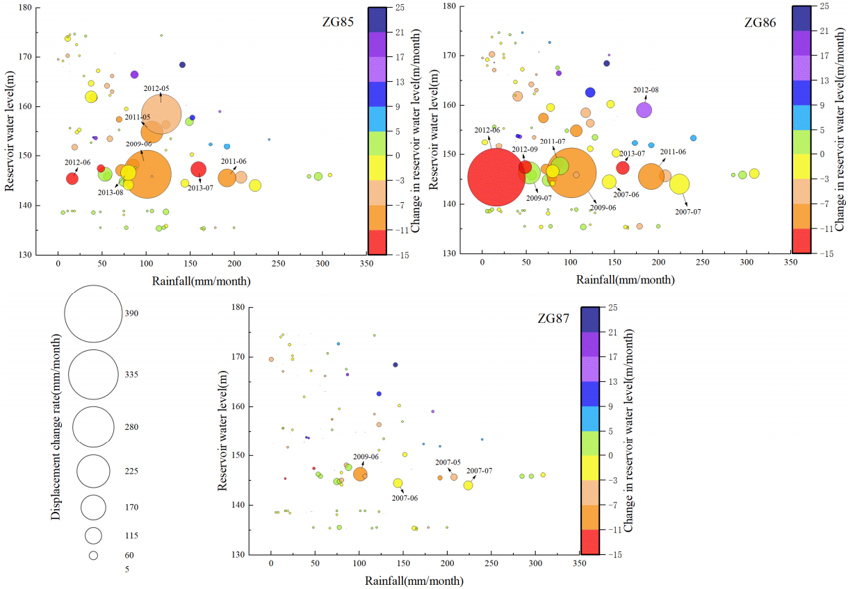 图1降雨、库水位及库水位变化与月位移量的关系