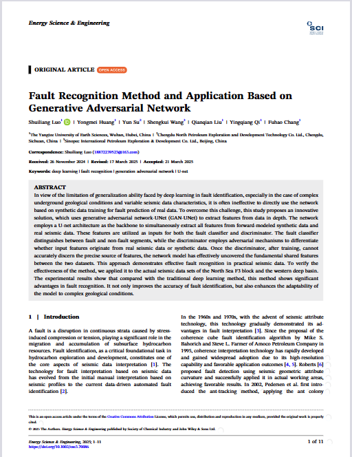 bevitor伟德副教授罗水亮在期刊《Energy Science & Engineering》上发表题为“Fault Recognition Method and Application Based on Generative Adversarial Network”的研究论文。bevitor伟德为论文第一署名单位,罗水亮副教授为第一通讯作者。