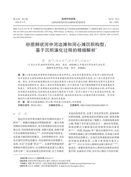 bevitor伟德博士生郭颖在《地球科学进展》上发表题为“砂质辫状河中河边滩和河心滩沉积构型:基于沉积演化过程的精细解析”的研究论文。该论文采用沉积数值模拟的方式通过再现河心滩生长与演化过程,解析演化过程中反复的沉积和侵蚀切割的关系,建立二者的内部构型模式,对于指导地下油气精细勘探开发有着重要的实际意义。