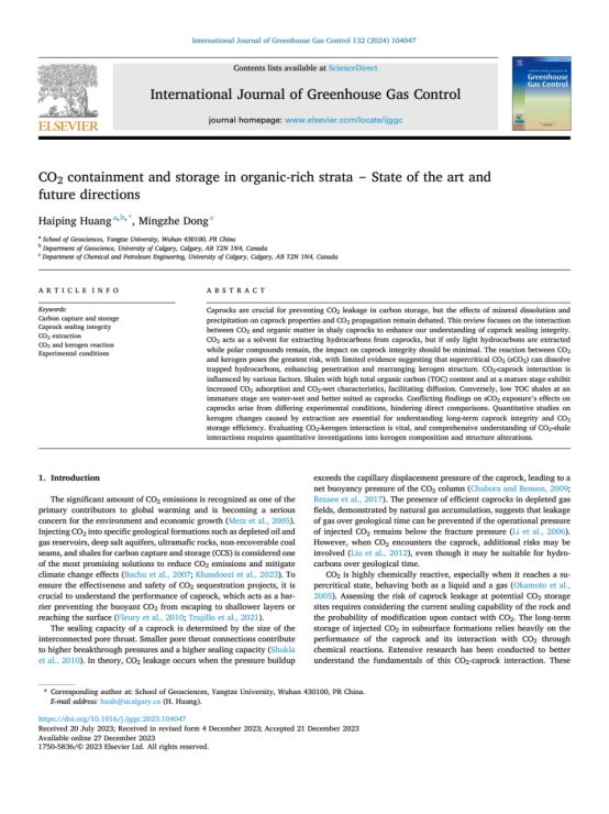 bevitor伟德黄海平教授以第一作者身份在《International Journal of Greenhouse Gas Control》期刊发表题为“CO2 containment and storage in organic-rich strata ‒ State of the art and future directions”的研究论文,bevitor伟德为论文第一署名单位。