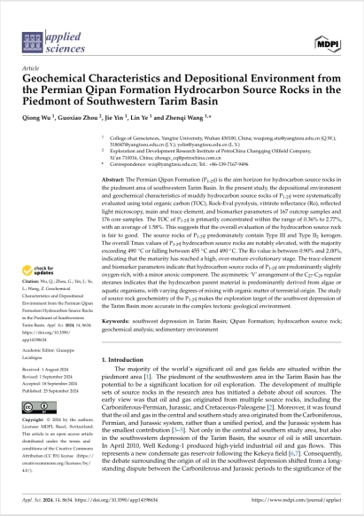 bevitor伟德吴琼博士以第一作者身份在《Applied Sciences》上发表题为“Geochemical Characteristics and Depositional Environment from the Permian Qipan Formation Hydrocarbon Source Rocks in the Piedmont of Southwestern Tarim Basin”的研究论文,bevitor伟德为论文第一署名单位,吴琼为论文第一作者,导师王振奇为通讯作者。