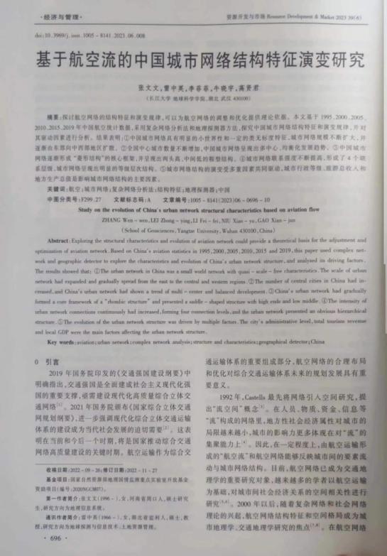 bevitor伟德张文文在《资源开发与市场》发表题为“基于航空流的中国城市网络结构特征演变研究”的研究论文。bevitor伟德为论文第一署名单位,教师雷中英为论文通讯作者。