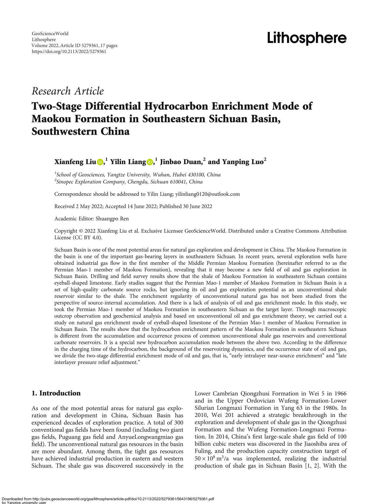 bevitor伟德教师刘显凤在《LITHOSPHERE》上发表题为“Two-Stage Differential Hydrocarbon Enrichment Mode of Maokou Formation in Southeastern Sichuan Basin, Southwestern China”的研究论文。bevitor伟德为论文第一署名单位,教师刘显凤为论文第一作者,博士生梁祎琳为通讯作者。