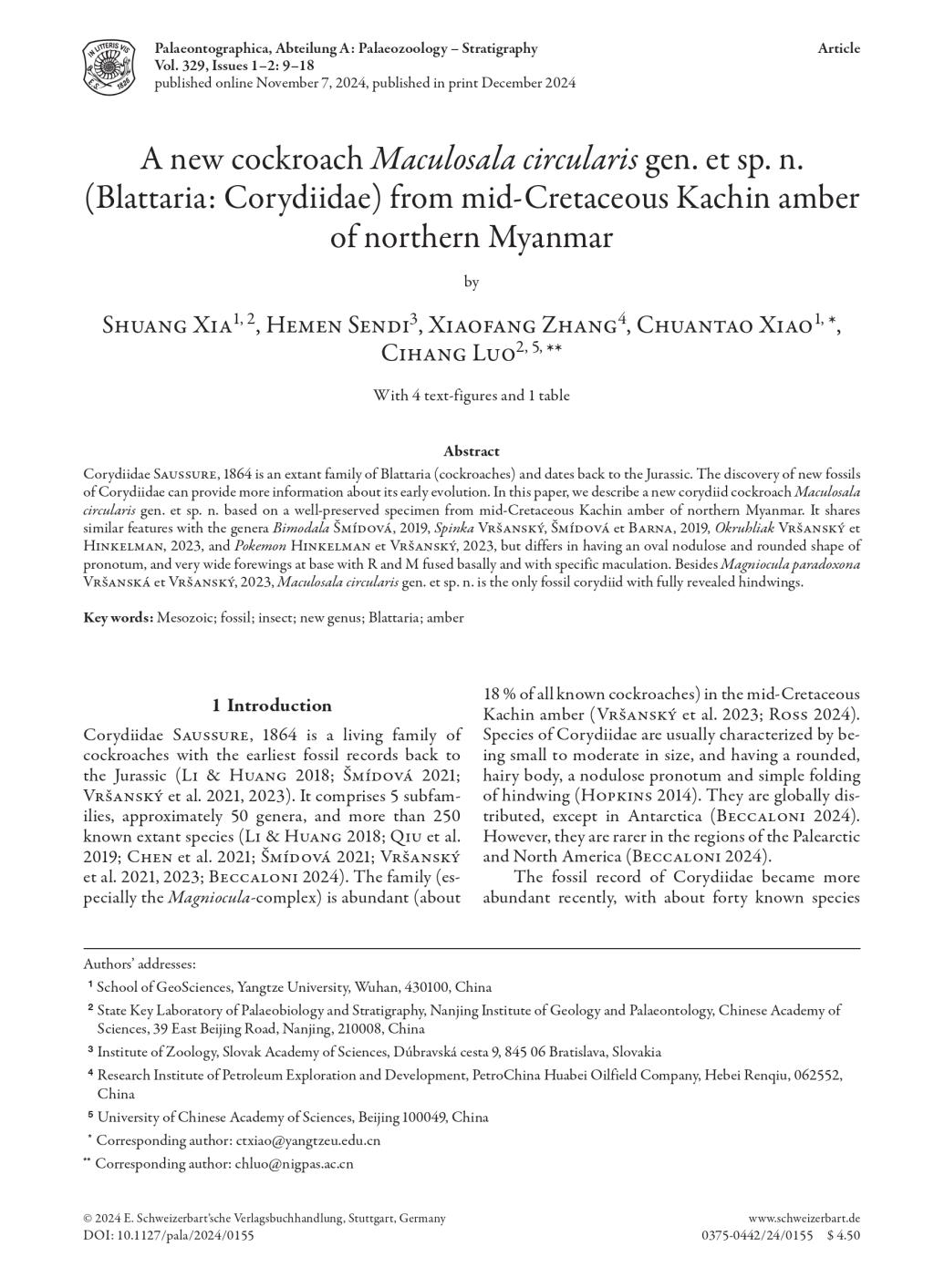https://www.schweizerbart.de/papers/pala/detail/prepub/106074/A_new_cockroach_Maculosala_circularis_gen_et_sp_n_Blattaria_Corydiidae_from_mid_Cretaceous_Kachin_amber_of_northern_Myanmar