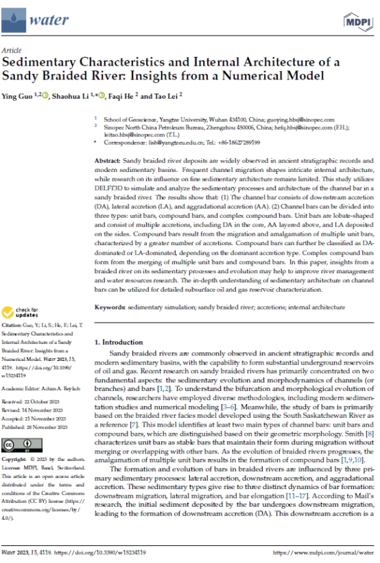 bevitor伟德郭颖博士在期刊《Water》上发表题为“Sedimentary Characteristics and Internal Architecture of a Sandy Braided River: Insights from a Numerical Model”的研究论文。bevitor伟德为论文第一署名单位,郭颖博士为第一作者,其导师李少华教授为该文通讯作者。