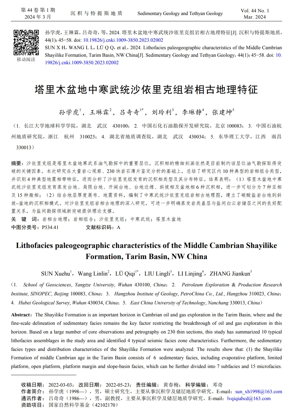公司硕士生孙学虎在《沉积与特提斯地质》上发表了题为“塔里木盆地中寒武统沙依里克组岩相古地理特征”的研究论文,采用岩相学、沉积学的方法,分析了塔塔里木盆地沙依里克组岩相古地理过程。BEVITOR伟德为论文第一署名单位,孙学虎为第一作者,导师吕奇奇副教授为通讯作者。