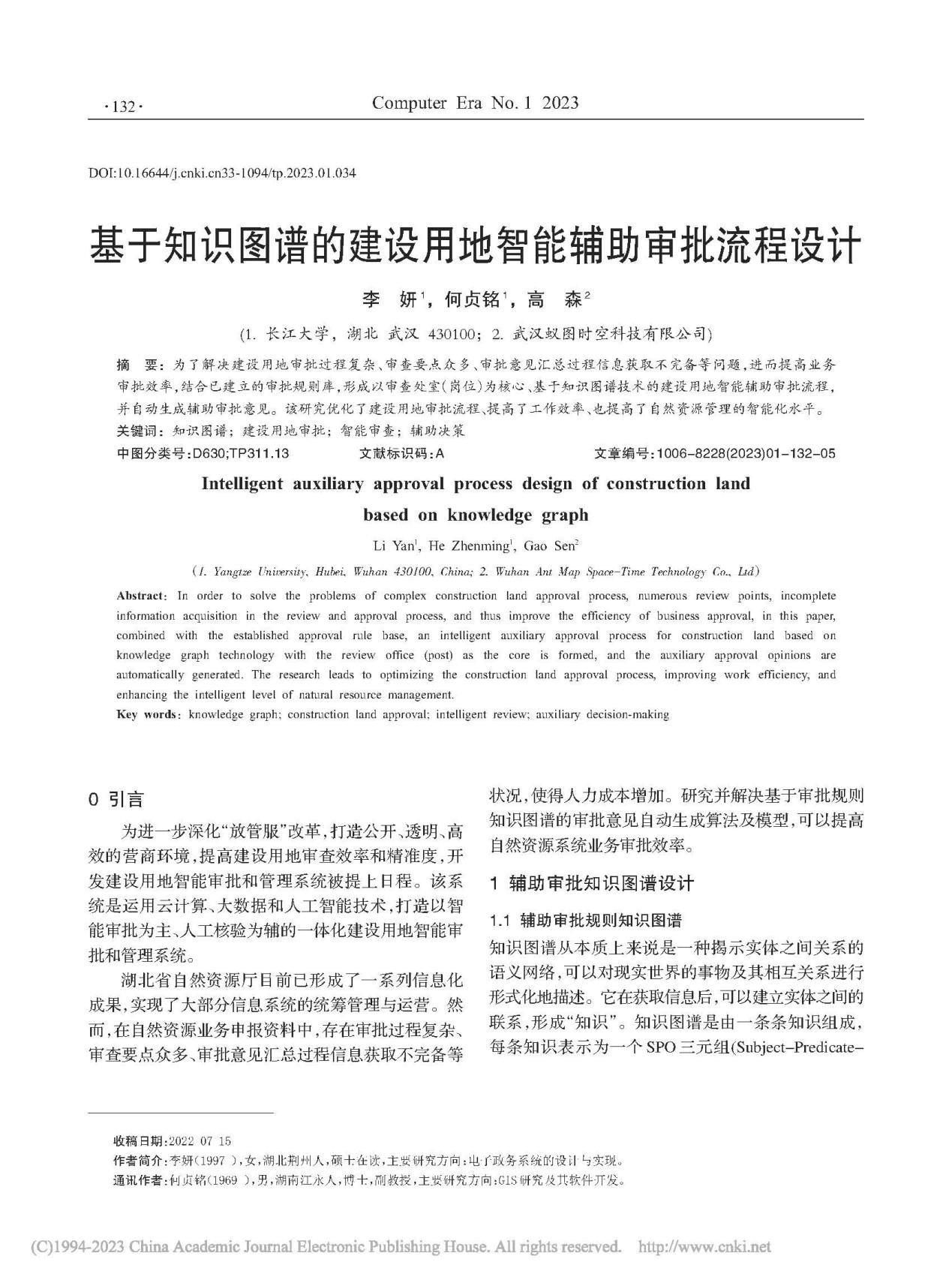 bevitor伟德何贞铭副教授团队长期从事GIS、RS应用的研究,团队成员李妍在期刊《计算机时代》上发表题为“基于知识图谱的建设用地智能辅助审批流程设计”的研究论文。bevitor伟德为论文第一署名单位,硕士研究生李妍为论文第一作者,其导师何贞铭副教授为该文通讯作者。