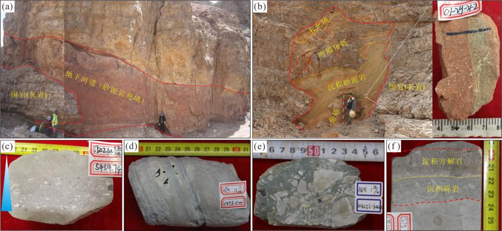 图1 碳酸盐岩古岩溶地下河充填特征及充填物类型