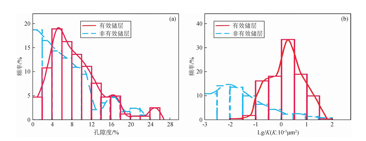 该研究选取了川中磨溪地区嘉二段碳酸盐岩储层为研究对象(图1),基于嘉二段孔隙结构差异,分为两部分(嘉二1与2A小层、嘉二2B和2C小层),通过对该地区岩心分析的分析的孔隙度、渗透率、压泵等资料来统计分析孔隙度、渗透率、饱和度参数之间的关系来确定储物层下限(图2、表1)。同时利用物性下限值的研究结果并结合对应孔渗数据探讨沉积与成岩等作用对储层的控制(图3)。研究结果表明研究区储层有效性主要受沉积微相和成岩作用的控制,沉积严格控制着储层的分布,成岩影响着原生孔隙的保留程度和次生孔隙的发育程度。