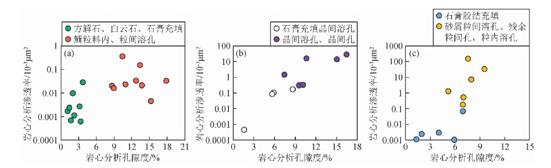 图3鲕粒灰岩、粉晶云岩、砂屑云岩孔渗关系