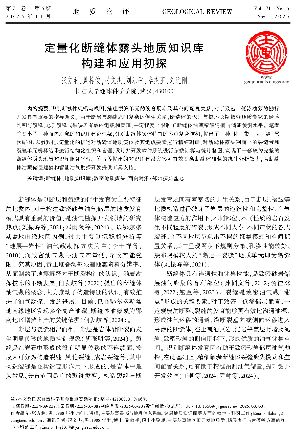 论文信息:张方利,聂梓俊,冯文杰,刘洪平,李杰玉,刘远刚. 2025. 定量化断缝体露头地质知识库构建和应用初探. 地质论评, 71(6): 2129-2138. https://doi.org/10.16509/j.georeview.2025.03.001.