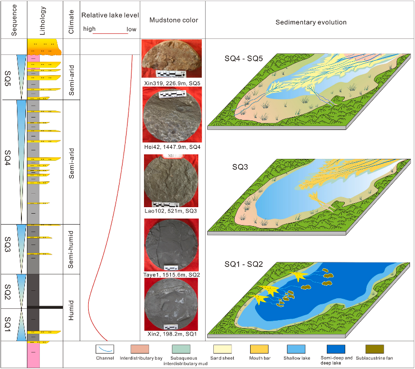 论文以松辽盆地南部上白垩统嫩江组为例,综合岩心、测井、地震及地球化学等资料,对嫩江组沉积体系类型、层序地层格架、沉积演化过程及其控制因素进行了系统研究,并探讨了其油气勘探意义。研究认为,嫩江组发育浅水三角洲-湖泊沉积体系。通过测井与地震相结合的方法,将嫩江组划分为5个四级层序(SQ1-SQ5)。SQ1–SQ2以半深湖—深湖沉积为主,发育优质烃源岩和多期湖底扇;SQ3以浅水三角洲前缘水下分流河道和河口坝为主体;SQ3–SQ5以浅水三角洲前缘水下分流河道和席状砂为主体。