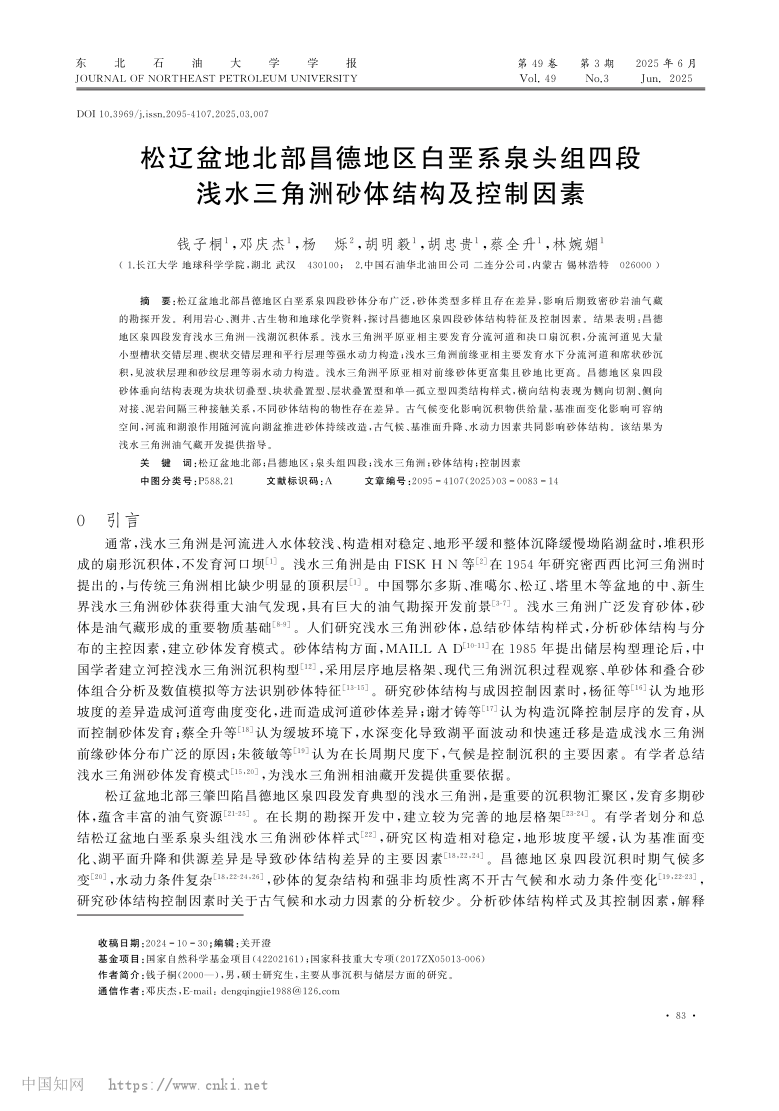 bevitor伟德23级硕士研究生钱子桐以第一作者身份在中文核心期刊《东北石油大学学报》发表题为“松辽盆地北部昌德地区白垩系泉头组四段浅水三角洲砂体结构及控制因素”的研究论文。bevitor伟德为论文第一署名单位,其导师邓庆杰副教授为论文通讯作者(图1)。