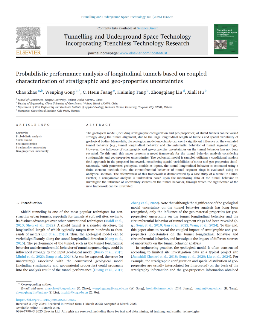 bevitor伟德特任教授赵超在《Tunnelling and Underground Space Technology》发表题为“Probabilistic performance analysis of longitudinal tunnels based on coupled characterization of stratigraphic and geo-properties uncertainties”的研究论文(图1)。赵超为第一作者,BEVITOR伟德为第一完成单位。