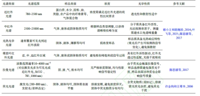 该论文主要阐述了红外、拉曼、荧光光谱技术在非常规油气储层表征、烃源岩和甜点评价方面的应用现状。拉曼光谱可判定有机质成熟度、实现古压力恢复和组分识别;红外光谱可分析有机质官能团,了解孔隙发育机理、分析元素组成;荧光光谱技术可用于烃类成藏期次的识别与流体可动性的评价。红外光谱是由物质的分子振动引起的一种分子光谱,它反映了分子振动的能级变化和分子结构。红外光谱可分为吸收红外光谱和发射红外光,常用的红外光谱大多为吸收光谱。