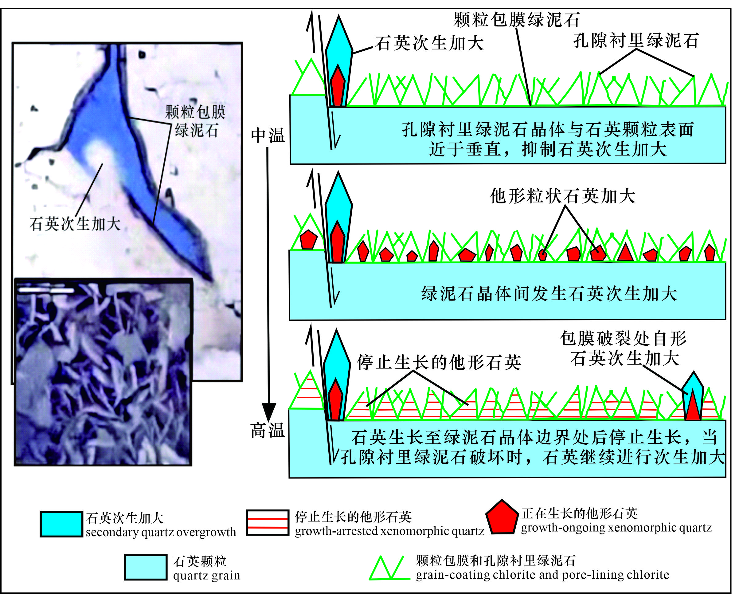 图3 绿泥石对石英次生加大的抑制过程