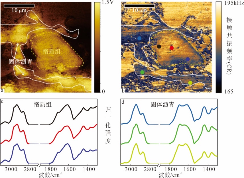 图4 页岩中惰质组与固体沥青相关成像(Yanget al.,2017)