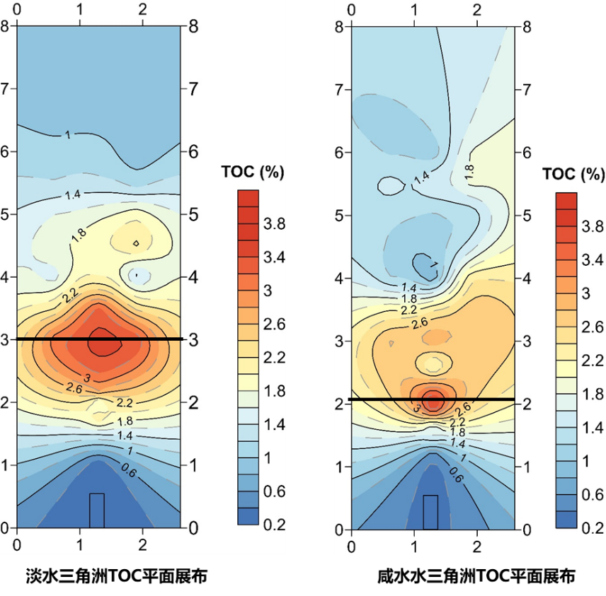 图1淡咸水条件下TOC平面分布