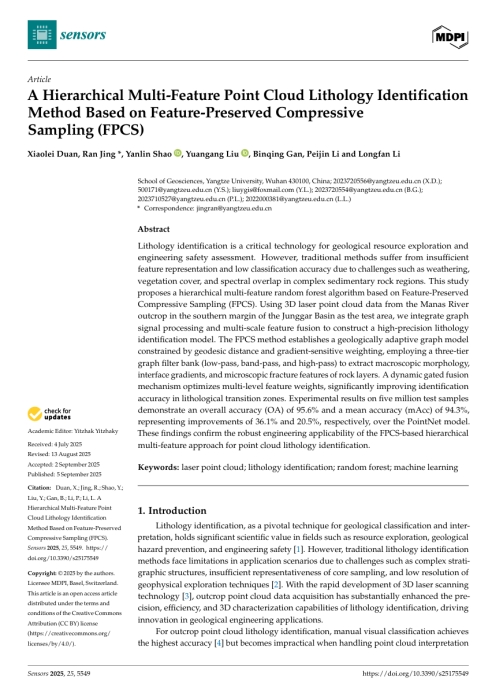 公司硕士研究生段晓磊参与撰写的论文“A Hierarchical Multi-Feature Point Cloud Lithology Identification Method Based on Feature-Preserved Compressive Sampling (FPCS)”发表于期刊《Sensors》。bevitor伟德为论文第一署名单位,段晓磊为第一作者,井然老师为通讯作者。