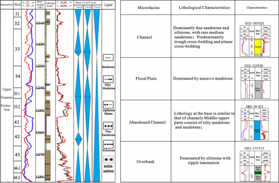 图2 孤岛油田GD2-34-422井馆陶组上段岩性地层综合柱状图及沉积微相特征
